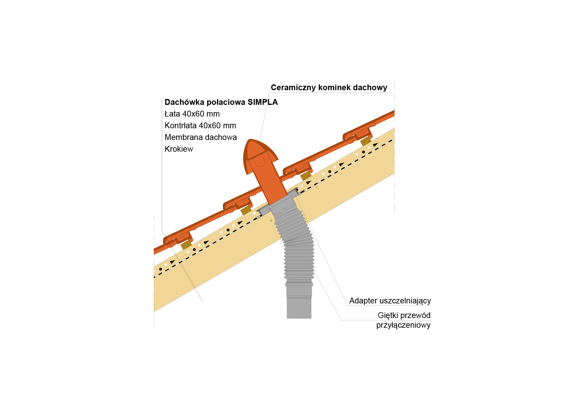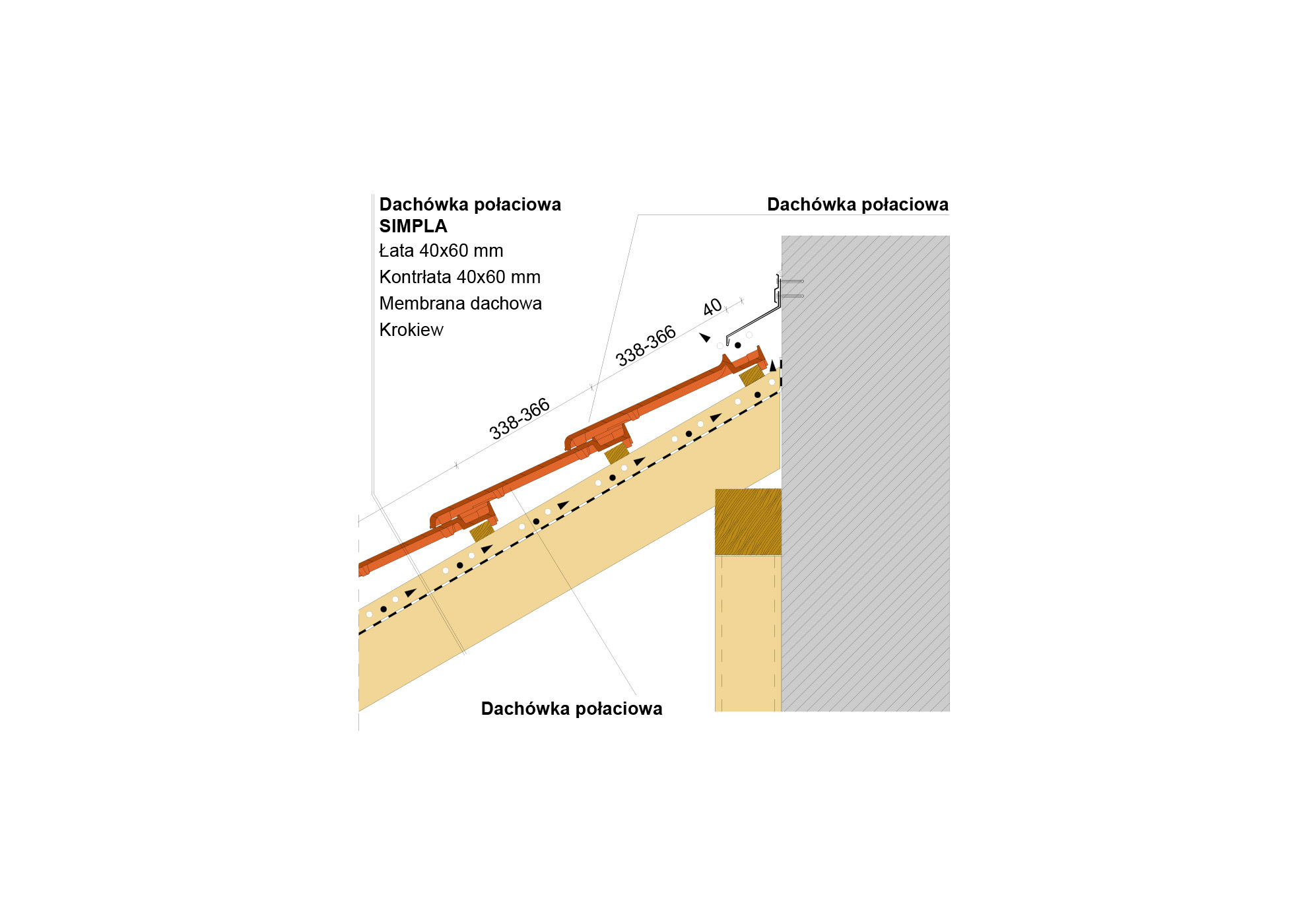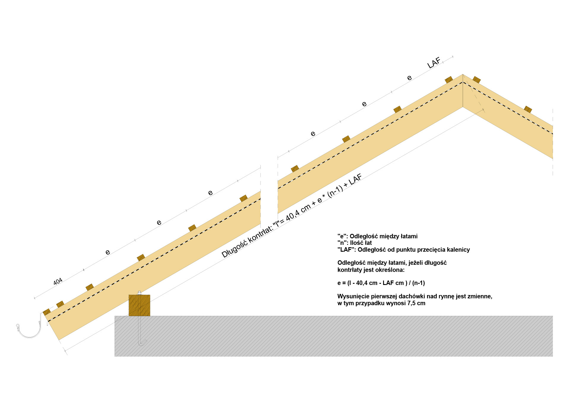 Przekrój wzdłużny połaci dachu