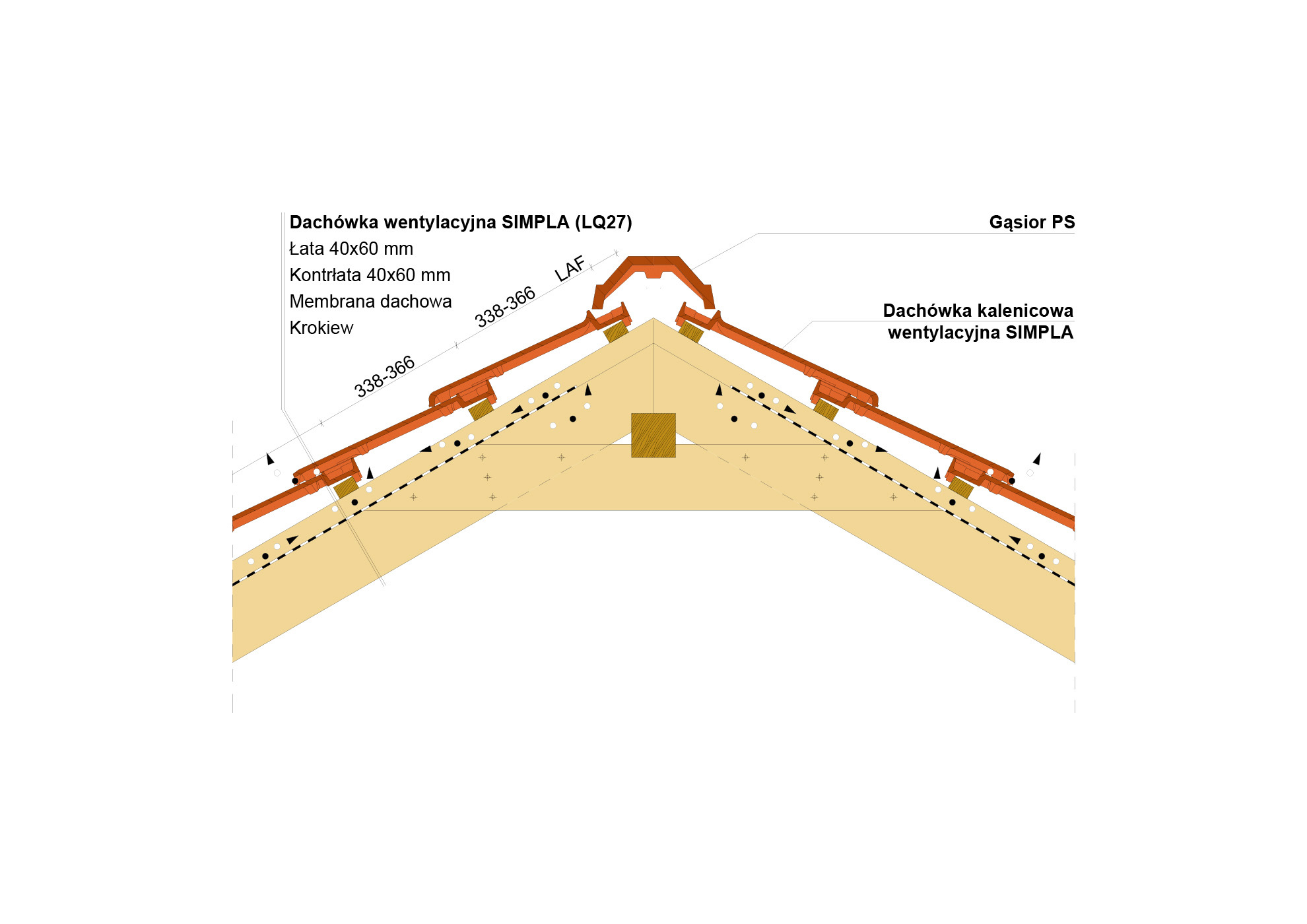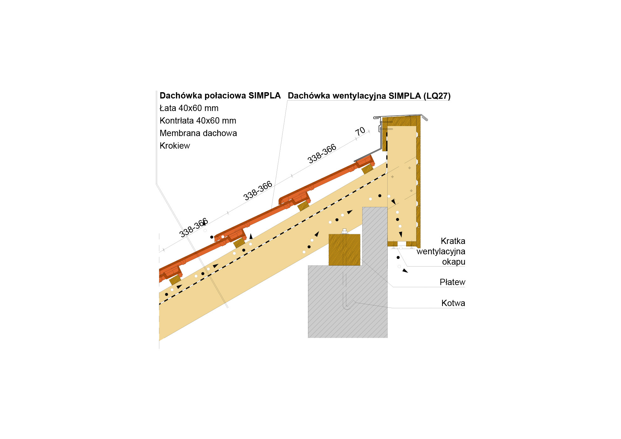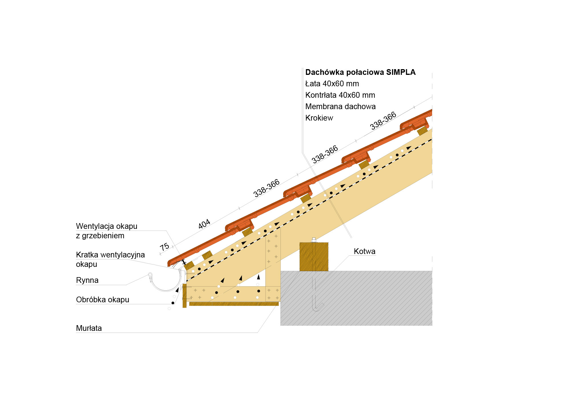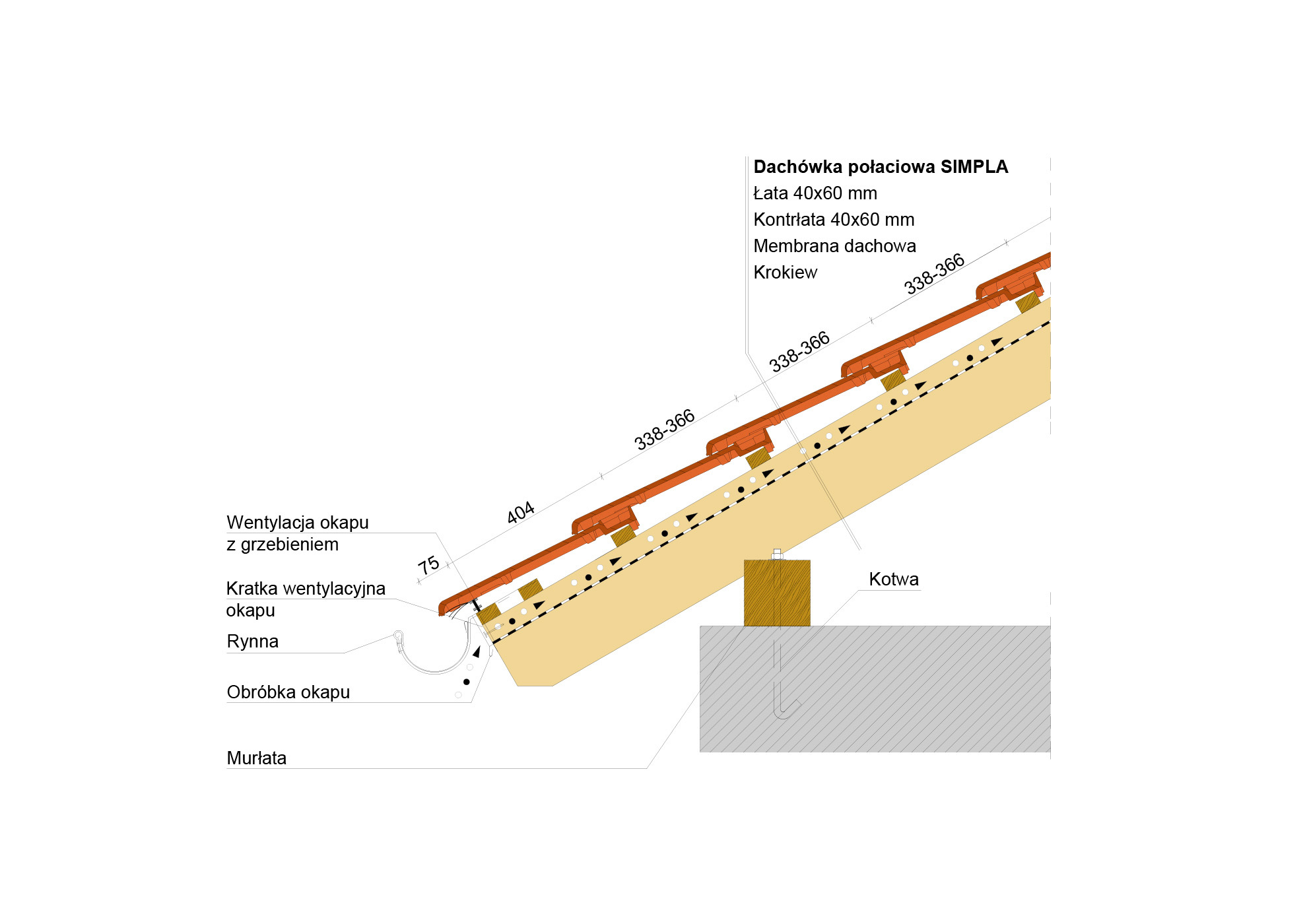 Przekrój wzdłużny połaci dachu